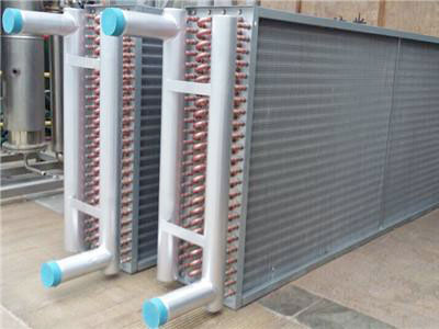 翅片式換熱器因采用機械繞片,散熱翅片與散熱管接觸面大而緊,傳熱性能良好、穩定,空氣通過阻力小,蒸氣或熱水流經鋼管管內,熱量通過緊繞在鋼管上翅片傳給經過翅片間的空氣,達到加熱和冷卻空氣的作用。