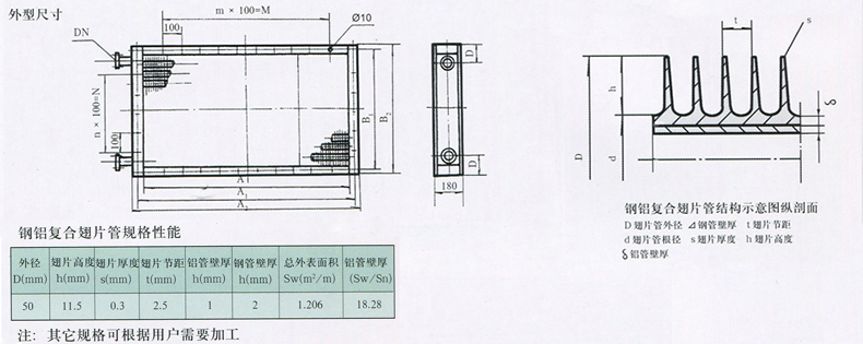 鋼鋁復合翅片管制造工藝先進,它是鋼、鋁管復合在專用機床上軋制面成,使鋼基管與鋁翅片結合緊密,它具有熱阻小、傳熱性能好、強度高、流動損失小,防腐蝕性能強、工作壽命長等優點。